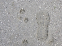 跡を付けていくと何匹かがいた様子です。どうもタヌキのようでした。