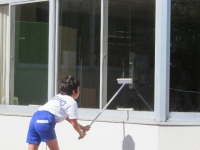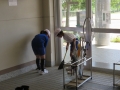 多目的ホール窓も4年生のボランティアが一生懸命にきれいにしていました。