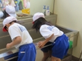 水場では,「こうごしごしすると汚れがとれるよ。」とか特別教室では「この部分に汚れが目立つなあ。」などのやってみてわかる気付きもあり,もっときれいにしようと工夫していました。