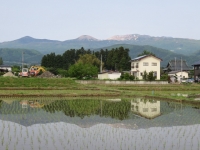 20日(金),水田の水面には吾妻山の姿がくっきりと写っていました。
