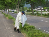 水面にも吾妻山 技能主査の先生も地域美化活動 交対協水保支部の方から激励