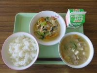5月16日 オムレツ,ひき肉と野菜あんかけソース,豚汁,ごはん