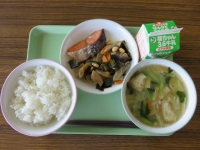 塩鮭,五目豆,キャベツのみそ汁,ごはん