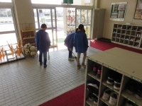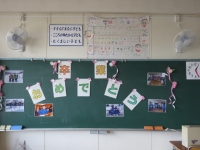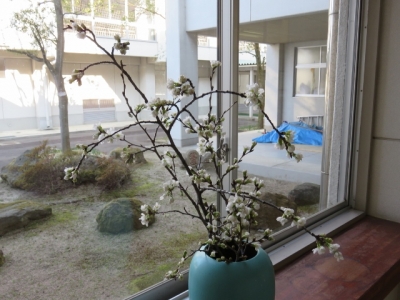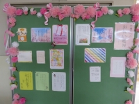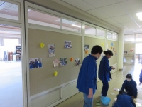 だいたいは作ってあったので,白布などをかけたり,表示板をつけたり,鉢植えを並べたりしました。また,6年教室やつばめ学級教室,廊下の飾り付けなども行いました。