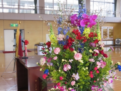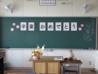 2016年3月22日 18時30分明日は,在校生の『修了式』を行ったあと,平成27年度最後の授業でもある『卒業証書授与式』を行います。学校は入学式から始まって卒業式で終わるとよく言われますが,最後のメインイベントである卒業式を最高のものにしようと今日の午後,職員と4,5年生で会場作成をしました。