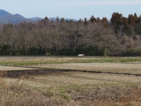 もぬけの殻の田んぼ 太陽のまわりに輪 モズ