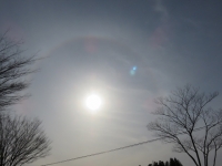 帰りに地区を周りながら学校に向かっているとき,太陽のまわりに輪がかかっているのに気付きすぐさまシャッターを切りました。天気は下り坂かだなと思ったら9時過ぎには曇ってきました。