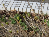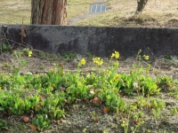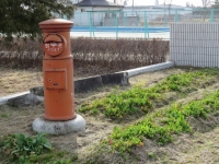 学校に帰ってくると,寄贈された郵便ポストの脇にある花壇では,菜の花がたくさん咲いていました。あじさいも新芽が出始めていました。