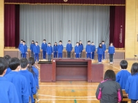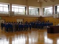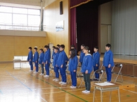 卒業生の歌(旅立ちの日に),在校生の歌(大空が迎える朝)は今日がお披露目でしたが,1回目としては上出来でした。卒業生はきれいな声で歌っていますので,よりボリュームが上がればばっちりです。在校生の歌はとても声量があり体育館一杯に響きわたっていました。ただ,元気がありすぎて伴奏と合わないときがあったので,「伴奏をよく聞いて合わせて歌う」ことをめあてにこれから指導していきます。3回目が楽しみです。