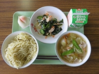 今日の給食はタンメン,わかめサラダ,ひとくち桃まんじゅうでした。