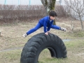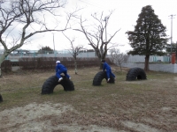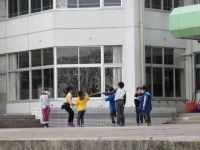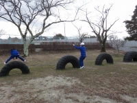 2016年3月10日 10時30分昼休みに,体育で学習した跳び箱運動の応用編として,2年生の有志(!?)は校庭のタイヤ跳びに挑戦しています。子どもたちは跳び箱と違い,足をしっかり開いて,手の突き放しも強く正確に行わないと跳べないということが分かっているので,まずは低いタイヤに助走をつけて乗るところから始めています。じっと見ていましたら,足もとが滑るときは無理をしないで助走も少なめに行ったり,大きなタイヤは小さめのタイヤを十分に跳んでから挑戦したりするなど,自分なりに安全に気をつけて跳んでいました。