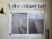 「なぜ,どうしてコーナー」は朝の交通指導や地区内巡視の折に撮った写真を貼って,「どうしてこうなるの?」と子どもたちに考えさせるようにしています。
