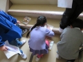 2日(水)4校時,1年生が廊下で「でこぼこはどれ?」「これこれ」「あったよこっちだよ」などと言ってあちこちに紙をかぶせて色鉛筆でなぞっていました。