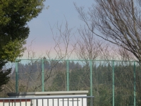 掃除の時間,校庭から北方面を見たら,空が虹色にぼ~っと霞んでいました。