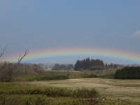 これは虹!かな?と屋上に行ってみたら何と低い位置に虹がかかっているではありませんか。