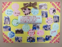 さて,今日は全校集会で1年生の発表があります。教室の前には,交流活動を行ってきた庭塚幼稚園からのお礼のメッセージが貼ってあり,幼稚園生のお礼のメッセージに,1年生はまんざらでもない表情をしていました。今日はどんな発表になるか楽しみです。