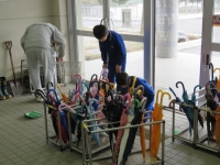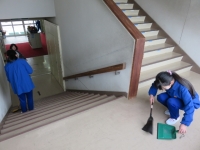 2016年2月17日 12時00分朝のボランティア清掃を6年生がやっていました。今日は,昇降口,階段・廊下などでした。