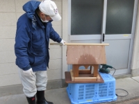 2016年2月4日 18時30分4日(木)技能主査の先生が端材を利用して作ってきた「小鳥のえさ台」が完成しました。