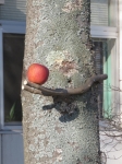 登校してきた子どもたちも何でりんごがのっているのか?始めは不思議そうに見ていましたが,「なあるほど」と回りをきょろきょろ見ていました。