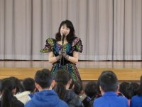妙子さんの歌を聴いて,ほとんどの子が「こころがほっこり」したようでもっと聴きたいという子も多くいました。会議で来校されていた民生児童委員の皆さんも心が温まったとおっしゃっていました。