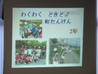 2年生の発表では,水保地区内のお店や果樹園を訪問したときのことや共撰場に行ったときの様子を担任の先生がプレゼンテーションで映す活動している写真と合わせて各グループ発表が行われました。活動したことや思ったことがしっかりまとめてあるよい発表でした。