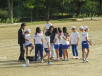 リレーに参加する子どもたちは,バトンを引き継ぐ走り出しのポイントを確認してリレー練習に取り組んでいました。