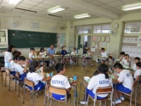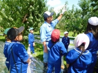 宍戸さんから梨の種類などについてお話ししてもらったり,梨のもぎ方を教えてもらったりしました。そのあと実際,梨狩りや桃狩りの体験をしました。実際体験しないと分からなかったことが多くあり,おいしくてためになる学習をすることができました。