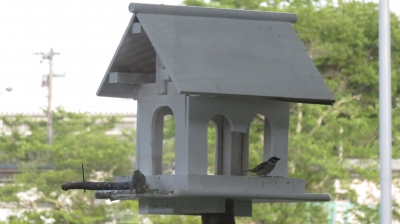 時たまカラスが大きな体をえさ台の中に突っ込んでくるのでなおさらです。