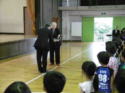 2017年7月18日 13時16分全校集会でユネスコスクール・プレート伝達式を行いました。子どもたちは、福島ユネスコ協会会長の河田亨さんから「持続可能な社会づくりの担い手として、勉強に運動にがんばってください」との激励の言葉をいただきました。その後、河田会長から校長へユネスコスクール・プレートを伝達されました。なおいただいたプレートは、正面玄関に掲示しましたので、本校に来校される際はぜひご覧ください。