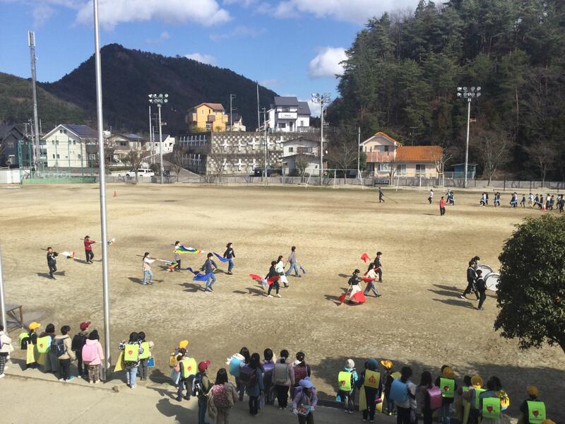 1・2年生が見守る中、5年生が、校庭で鼓笛の練習をしました。