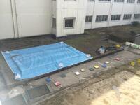 完成した砂場に、綺麗なカバーが。砂場で思い切り遊ぶ子供たちの姿が楽しみです。カバーも、寄贈していただきました。