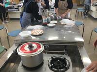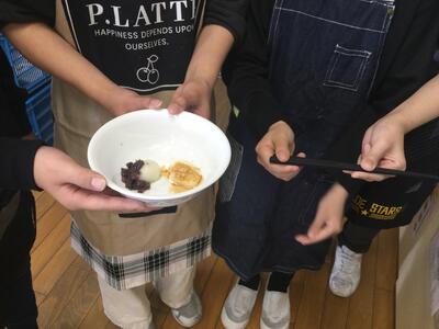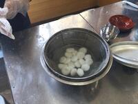 家庭科室で、調理実習です。白玉団子を作っていました。試食させていただきました。おいしかったです。