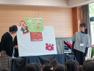 2月27日に、図書ボランティアの皆さんが「ふくよみの日」イベントを実施しました。今回は、ペープサート「さるかに合戦」です。多目的ホールに集まった子供たちは、面白い話の展開や、台詞に、声を上げて笑ったり、ニコニコ微笑んだり・・・楽しいひとときを過ごしました。図書ボランティアの皆さん、ありがとうございました。