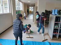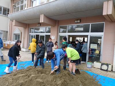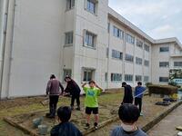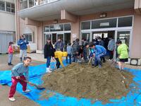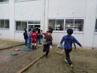 中庭の砂場づくりを進めてきましたが、まだ完成ではありませんでした。砂を増やすために、また運びいれました。今回は、放送で、5・6年生のボランティアを募りました。30人くらい来てくださいということだったのですが、30人以上の子供たちが集まり、バケツリレーをしました。「おもしろい。」「もっとやりたい。」と、笑顔いっぱいで、やる気満々の子供たちの姿は頼もしかったです。5・6年生という放送でしたが、いつの間にか、1年生など他の学年も混ざって、働いていました。机に座っているだけが、学びではありません。むしろ、このような活動が、子供の心と頭と体が鍛えられるのだということを、張り切り、生き生きしている子供たちの姿か教えてくれました。掃除をして、最後まで活動している子供たち、そして、仕上げは、6年生が行いました。