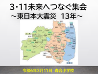 2024年3月11日 16時40分13年前の東日本大震災について、「3・11未来へつなぐ集会~東日本大震災 13年~」をオンラインで行いました。校長講話として、「地震」「津波」「原子力発電所事故」が起きたことなど、プロジェクター資料を使って、話がありました。子供たちのほとんどが生まれていないときの出来事ですが「福島県民の一人として、どうしていくか」を考えました。「知ること」そして、何よりも「生きる」ことが大事と、確認しました。