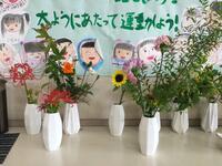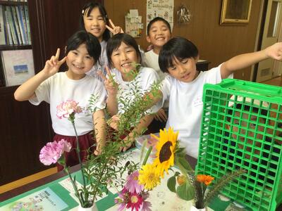 3年生が、総合的な学習の時間に、地域の生花名人から、花の生け方を学びました。