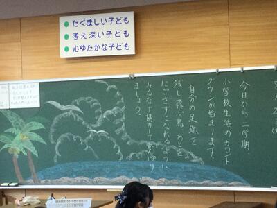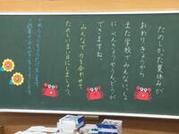 2学期が始まりました。子供達を迎える教室の黒板には、ステキなメッセージが・・・