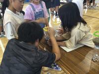2023年7月21日 16時00分4年生は、福島市水道局の皆さんから、水道の仕組みについて、実験を通して学んでいました。体育館で、班ごとに、実験しました。