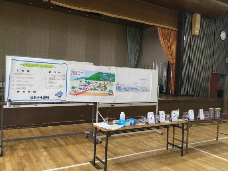 4年生は、福島市水道局の皆さんから、水道の仕組みについて、実験を通して学んでいました。体育館で、班ごとに、実験しました。
