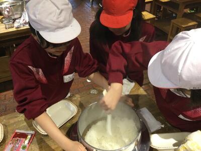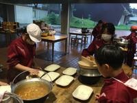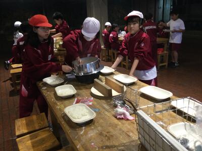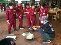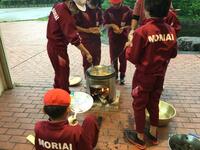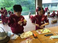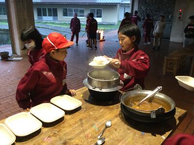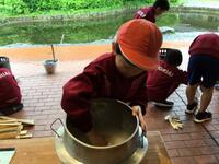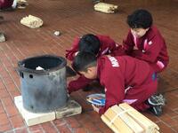 野菜を切ったり、かまどの火をくべたり、協力して、活動しました。