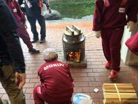 各班ごとに、夕飯のカレーとご飯を作ります。レク班が、かまど担当です。