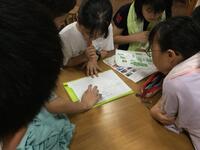 夜のメニューは、ナイトハイキングでしたが、かなり激しい雨だったので、室内で「自然の家ココドコ」を行いました。。写真と地図をもとに、その場所を探します。20問中、13問正解したのが、1班と6班が優勝しました。