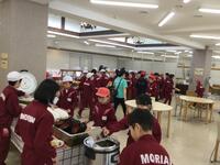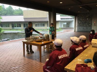野外炊飯です。火を起こして、材料をそろえて、やることがいっぱいです。所の先生から、説明を受けてから、開始しました。