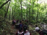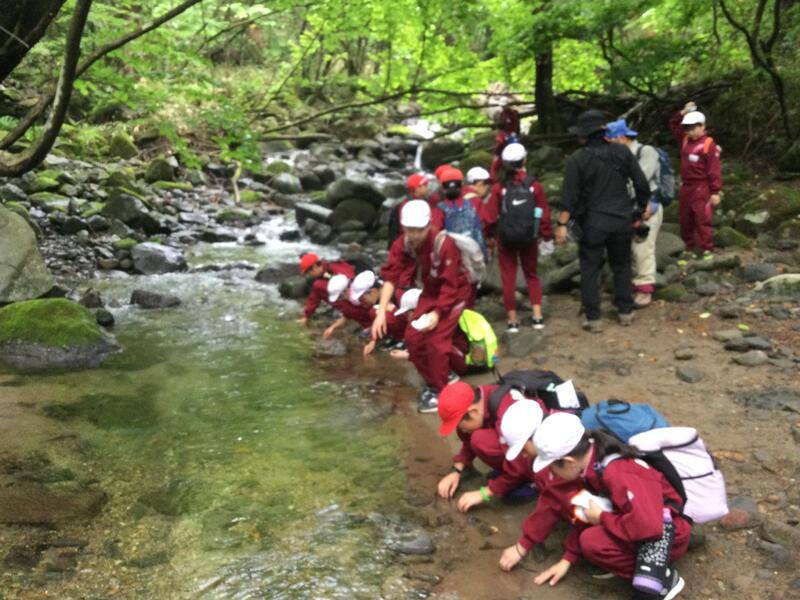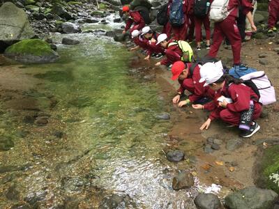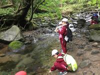 沢歩き。いよいよ、綺麗な沢につきました。雨の予報が外れて、とてもよい天気の中、活動できました。手を入れたり、魚を探したり。森の案内人の方々、お世話になりました。