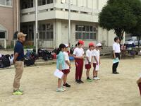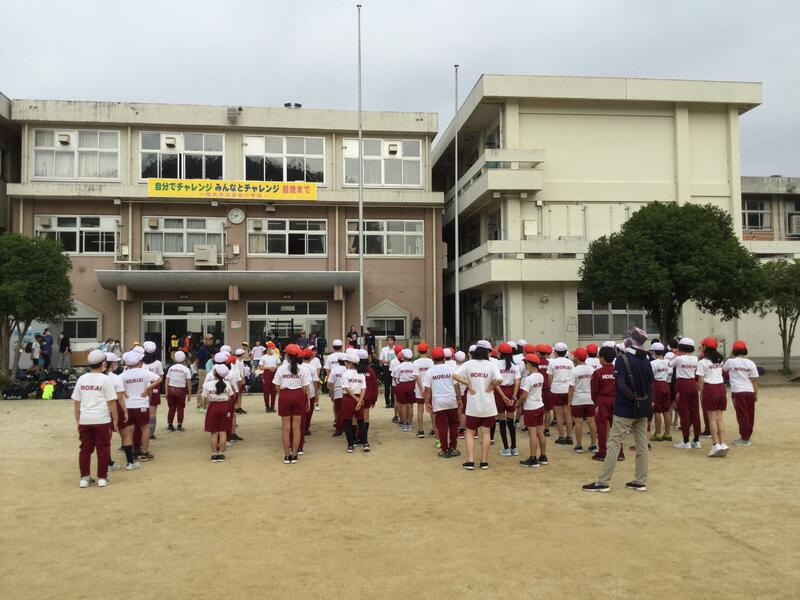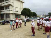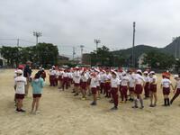 今日から、3日間、宿泊学習です。校庭で、出発式を行いました。