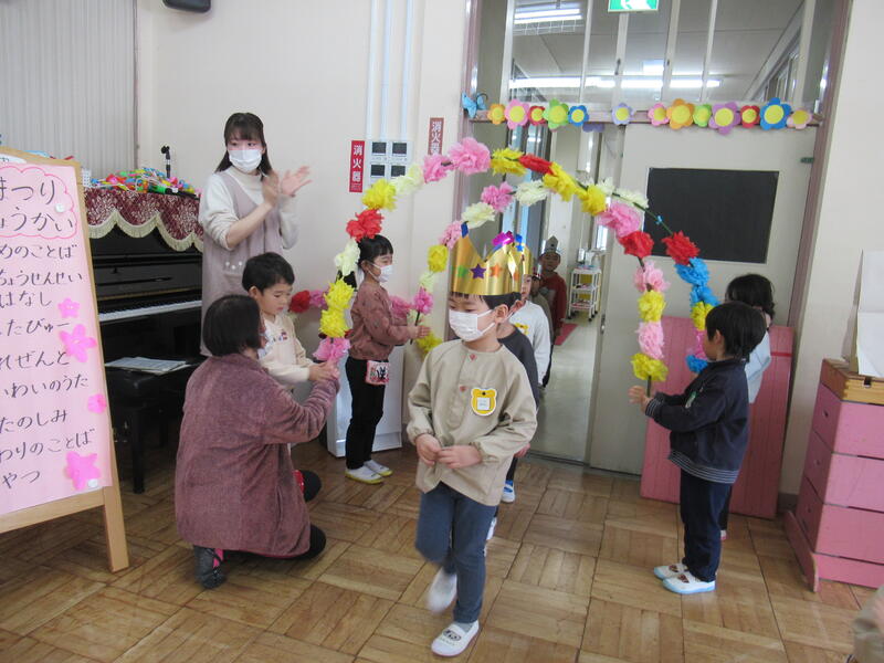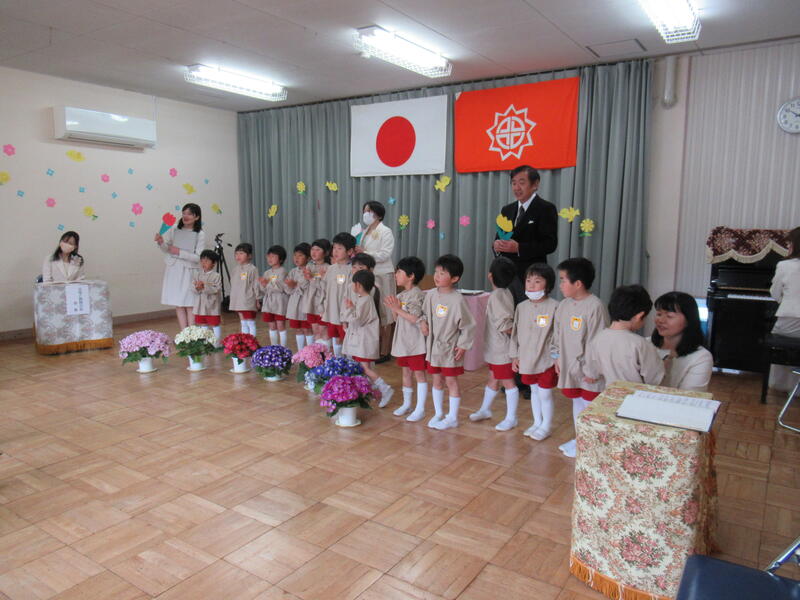 在園児が、入園されたお友達を「ちゅうりっぷ」の歌で歓迎しました。