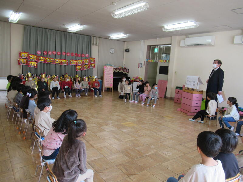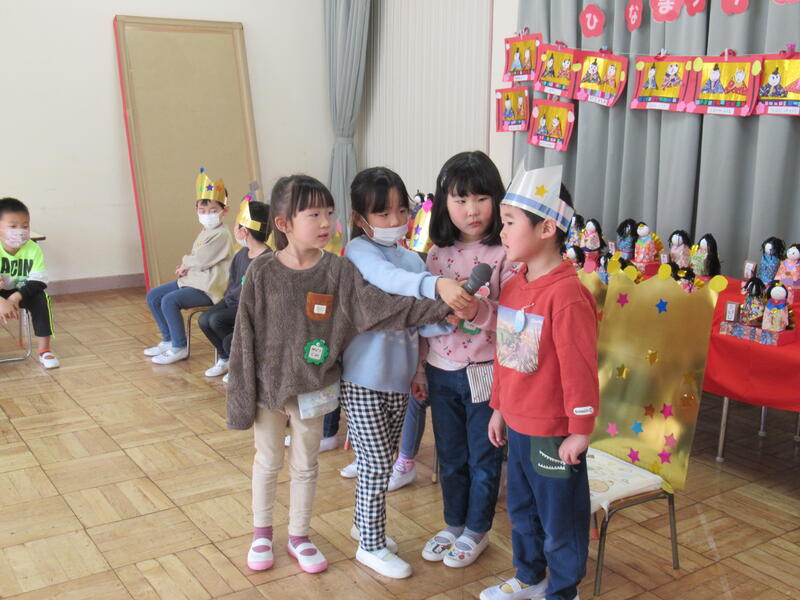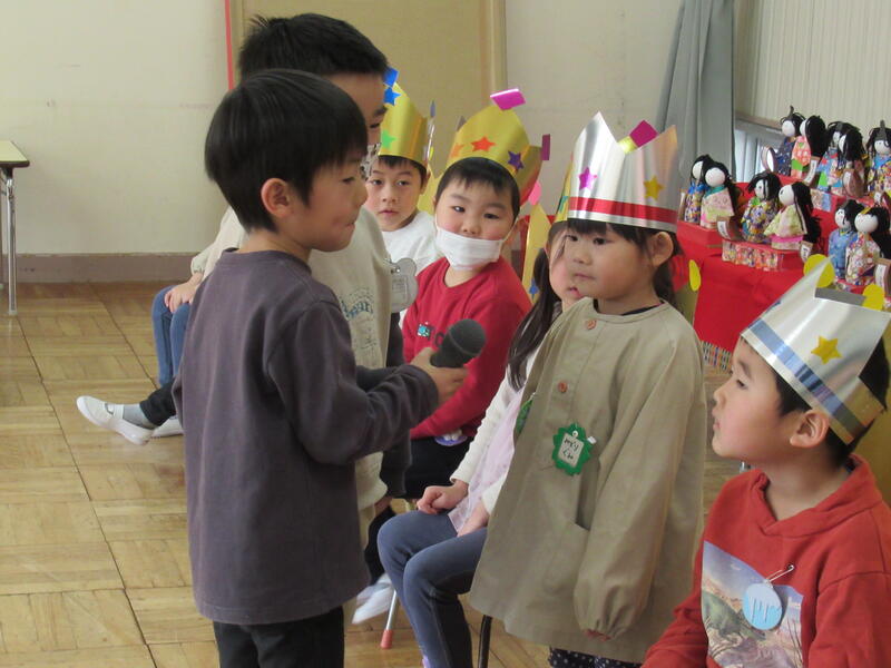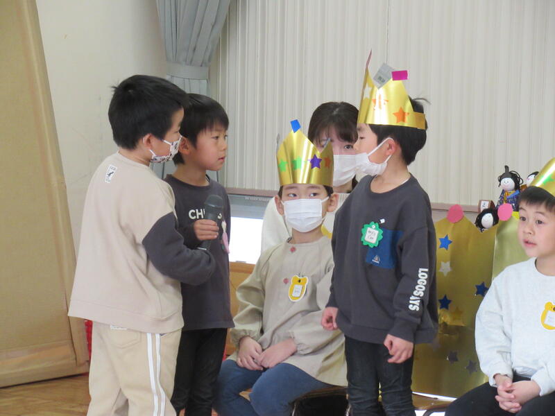 園長先生のお話は、「ひなまつりクイズ」。正解の連続。みんなよく知っていますね。