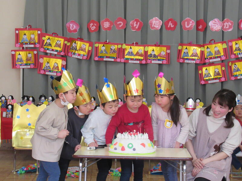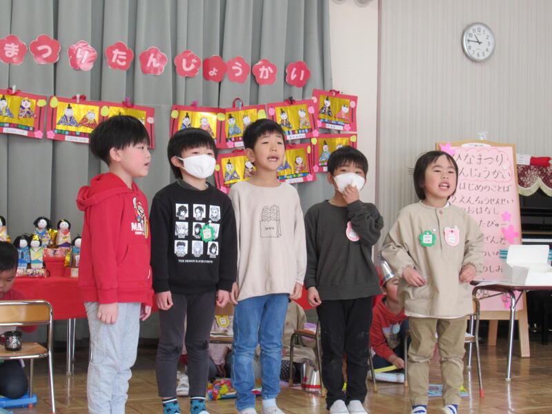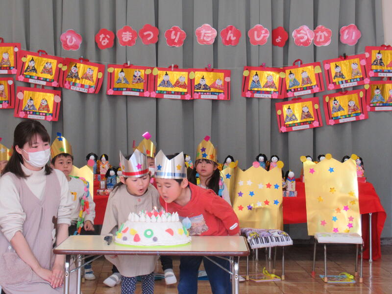 ひなまつりを兼ねて2月生まれと3月生まれのお友達の誕生会を行いました。