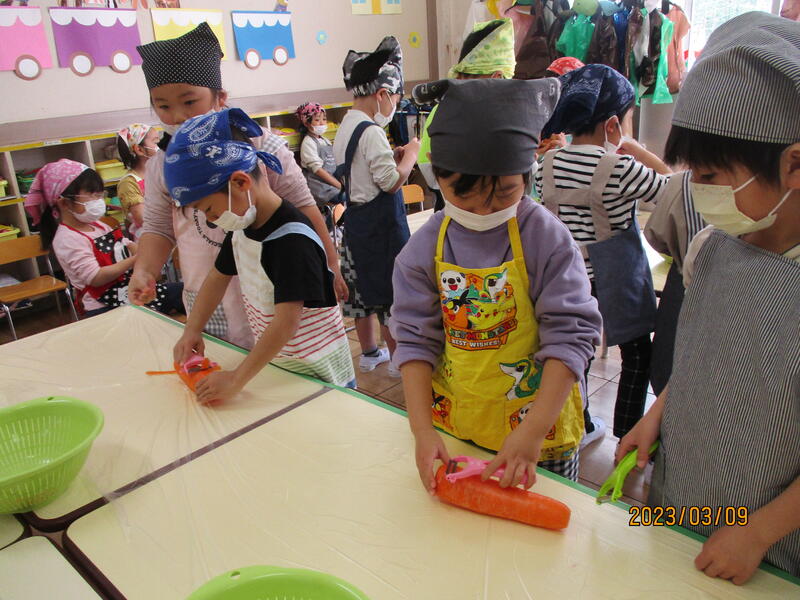さすが年長さんです。ピーラーや包丁を上手に使えました。