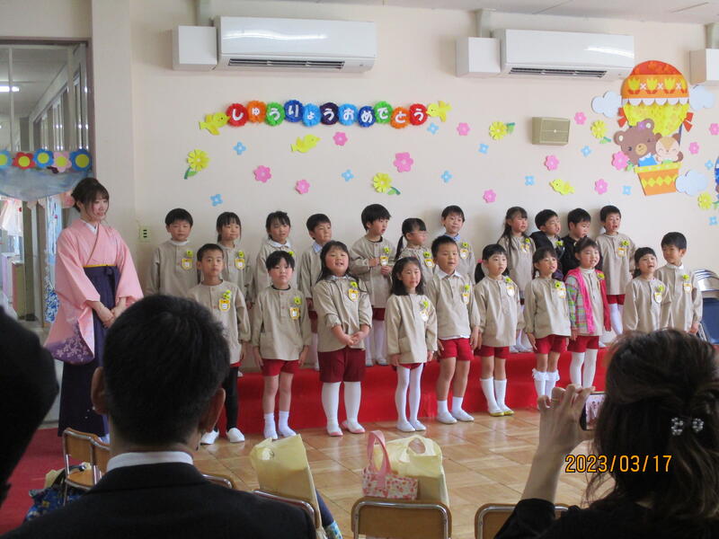 これでちゅうりっぷ組のお友達も、4月から立派なひまわり組の年長さんになれますね。